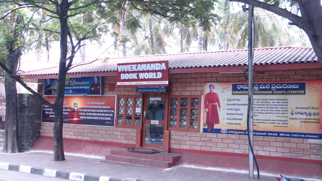 The Ramakrishna Math, Hyderabad has two Book Stores in its Campus. The main Book Store is near the main entrance in the name of ‘Viveka Chetana Book House’ and a small Book Store is near the Human Excellence building in the name of “Vivekananda Book World’ facing the main road. Both book stores have a huge collection of books on Sri Ramakrishn-Vivekananda Vedanta Literature, Scriptures, Upanishads, Brahma Sutras, Ramayan, Mahabharat, Bhagavad Gita, Bhagavatam, Puranas, Stotras, etc. published by Advaita Ashrama, Kolkata and other major publishing houses in India and Abroad. Apart from the books on Vedanta and Scriptures, a large collection of books on Education, Personality Development, Character Building, Women Empowerment, Ethics & Morals are also available. Articles like CDs, DVDs, Photo Frames & Laminated Photos of Bhagavan Sri Ramakrishna, Swami Vivekananda, Holy Mother Sri Sarada Devi, Posters, Japamala, etc. are available in both the Stores. Handwriting Practice, Drawing & Painting books, Series of books on Moral Stories, Ramayan, Mahabharat are available for children.